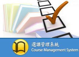 | 課程管理 | ‧課程建立:開課人數、教室、科目代碼、授課大綱等相關資料設定 ‧開課/停開課程管理:規定選課人數進行課程開課/停開審核 ‧除錯偵側:人工輸入疏失所造成不合邏輯之條件設定,除錯系統提醒 |